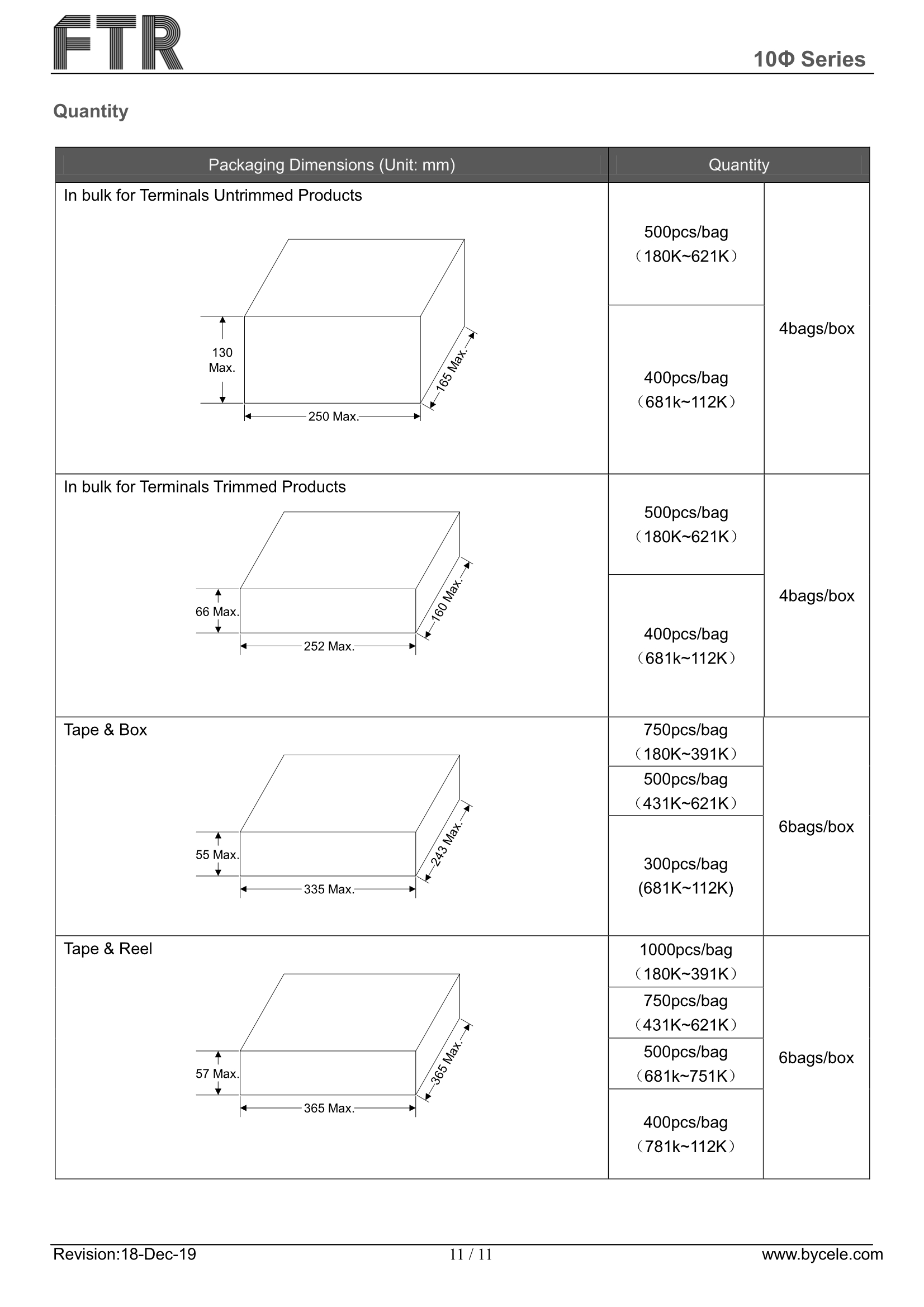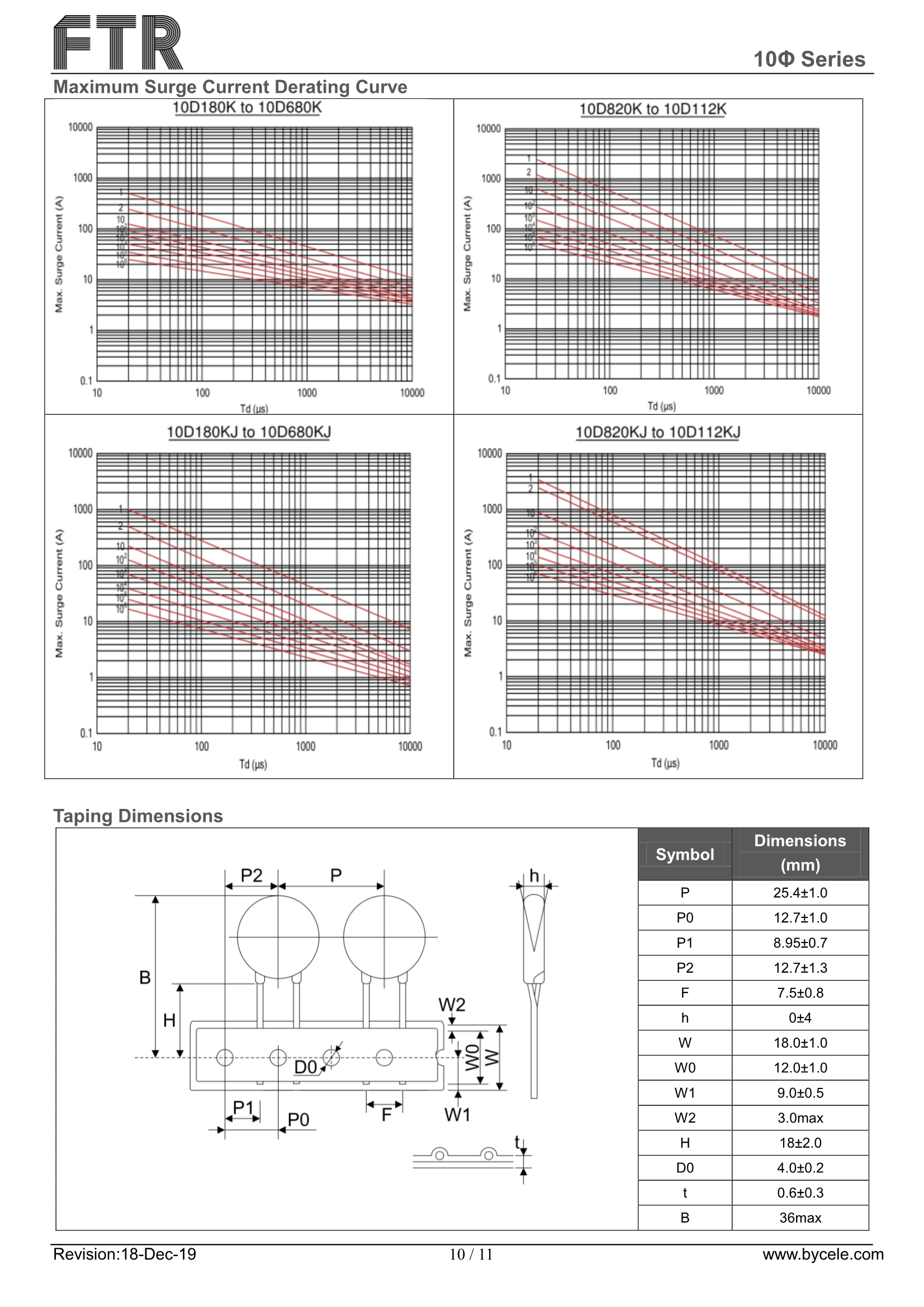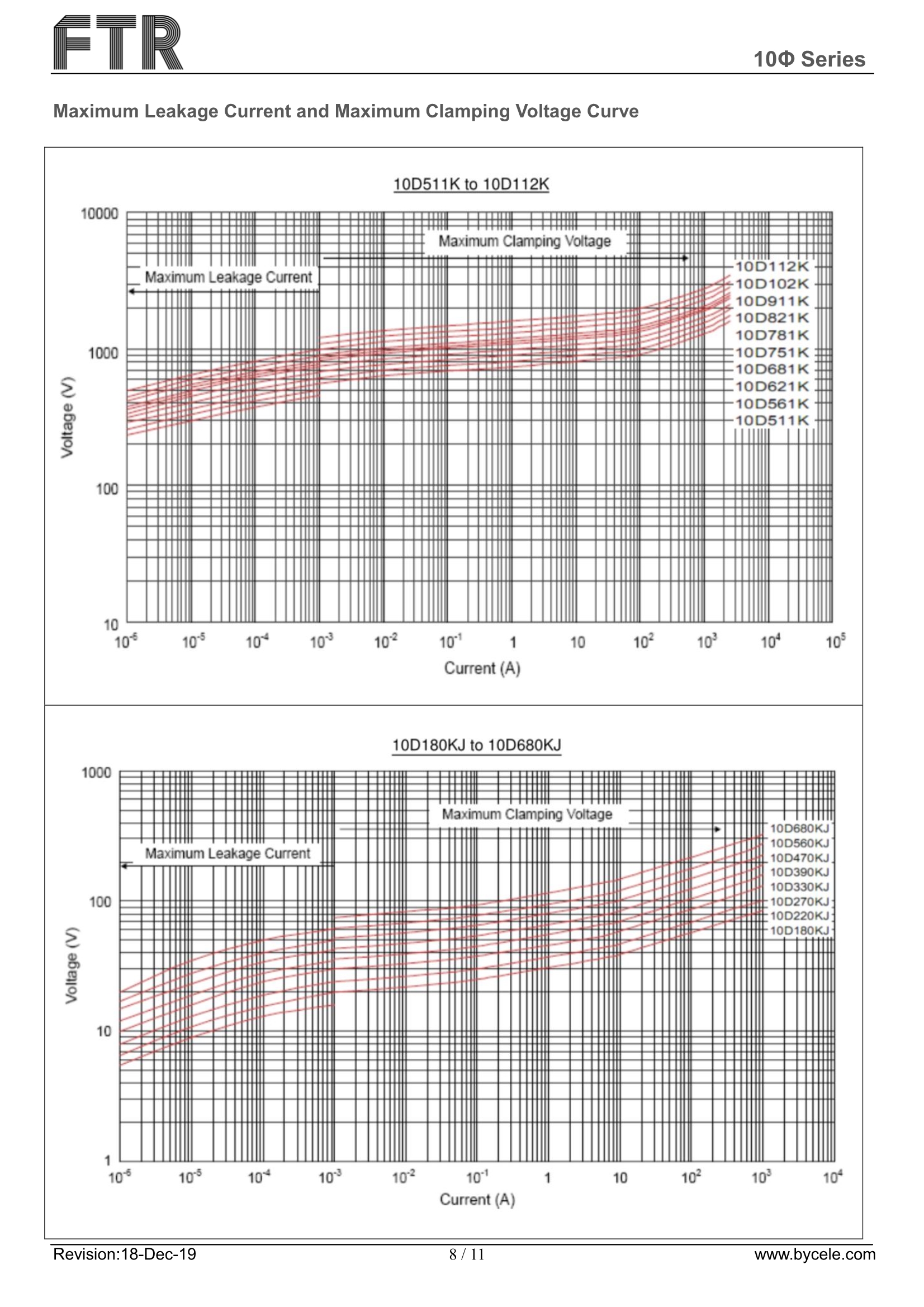 压敏电压: 18 - 1100V浪涌承受电流(8/20us): 500 - 3500A尺寸: 10mm