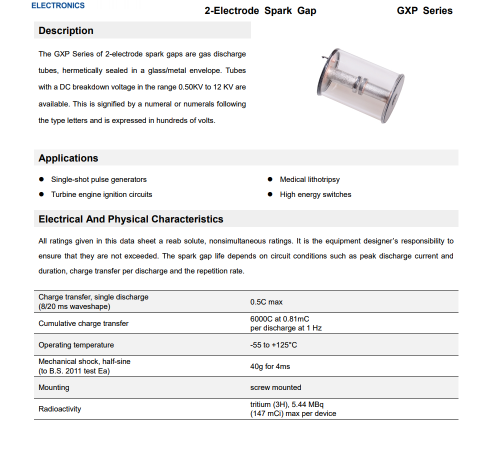 GXP高能点火放电管