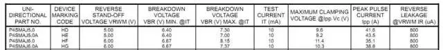 清楚了原理我们来看TVS管的一些参数,通过Datasheet来看更直观